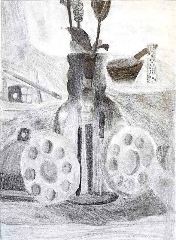 Rachel is a 10th-grade student currently enrolled in Drawing and Painting. Rachel shows a great love for art through hard work and dedication. Each of Rachel's artworks shows attention to detail and understanding of the materials. Rachel's still life is a wonderful example of her observation skills. We can not wait to see what Rachel comes up with next.
