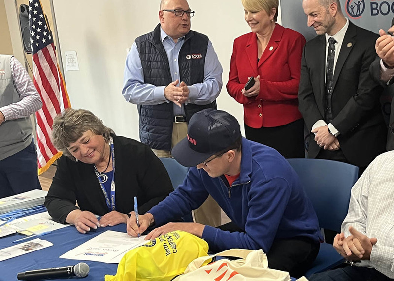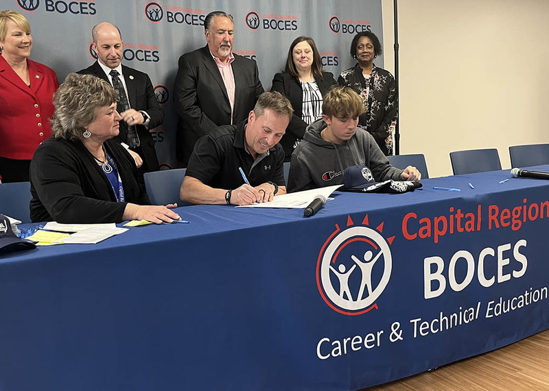 Jake Porter, Frankie Broadhurst, and Jack Berry were among 30 students, each studying under respective vocations including cosmetology to construction and heavy equipment, HVAC-R, and early childhood education. They all signed letters of intent to enter employment, apprenticeship, or continued education programs in the Capital Region upon graduating.