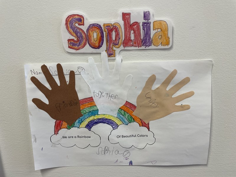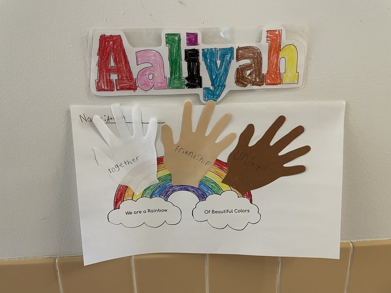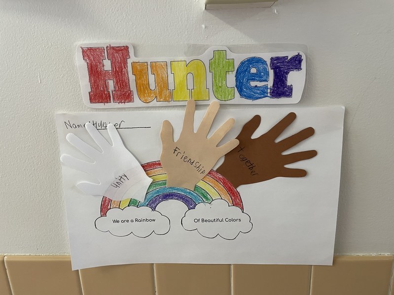After reading and discussing the book, the students got creative and put together artwork that emphasized the core of the story and their classroom – we are a rainbow of beautiful colors. It stands as an engaging and powerful reminder for all that walk the Pieter B. halls.