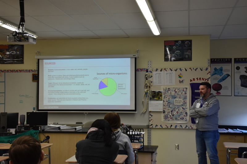 Last week, high school students in Mrs. Wolfe’s Introduction to Microbiology class, as well as Biology class, hosted a guest speaker from the Rensselaer-based company Regeneron. According to their website, Regeneron is a leading biotechnology company that invents life-transforming medicines for people with serious diseases. This visit was meant to give students direct access to real-world applications of microbes and career exploration.