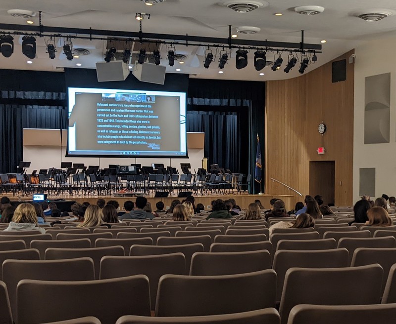 For the March 15 event, students followed a virtual format presentation by the United States Holocaust Memorial Museum. The students watch a 30-minute interview between a Museum staff member and Holocaust Survivor Estelle Laughlin. According to her biography, Ms. Laughlin was born and raised in Poland before being forced to live in a ghetto and later, a concentration camp. This interview was followed by some time for questions and comments from the students. The students thought critically about the questions they had and heard some remarkable stories of strength and determination.
