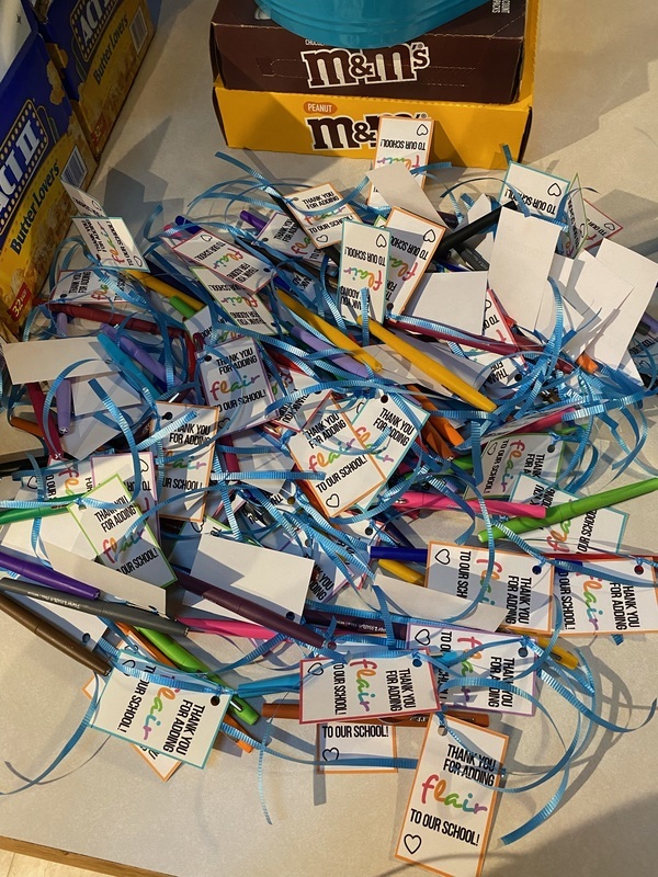 On Wednesday, each staff member received a flair pen as a thank you for adding flair and creativity to our school! For Thursday’s celebration, staff got to enjoy some delicious M&M treats while spending some time with their coworkers.