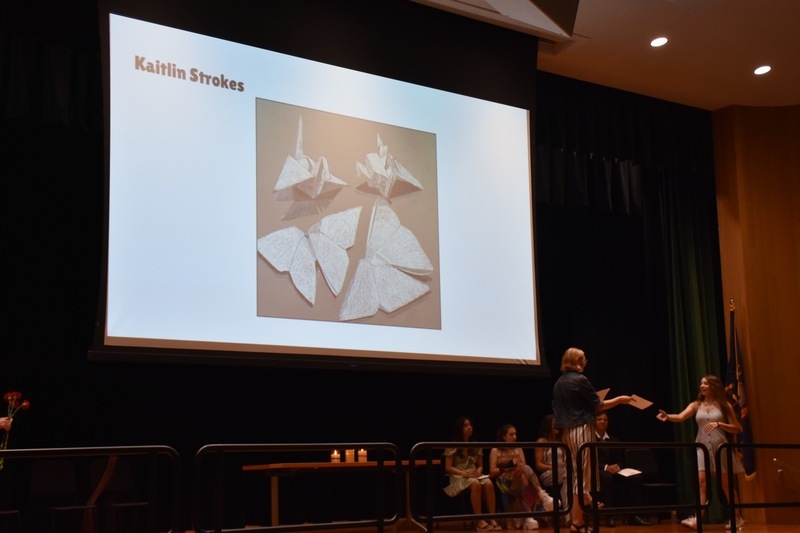 On Thursday, June 9, 11 students were inducted into the National Art Honor Society (NAHS). Members of NAHS must demonstrate dedication to their artwork, holding themselves to a high creative standard, upholding a B or above average in their art courses, and creating a positive and constructive atmosphere within the art classroom. Additionally, members need to have completed one full credit of a high school art course and have a recommendation from a visual arts teacher.
