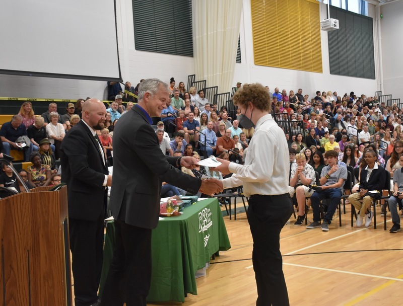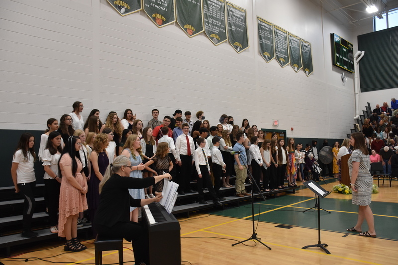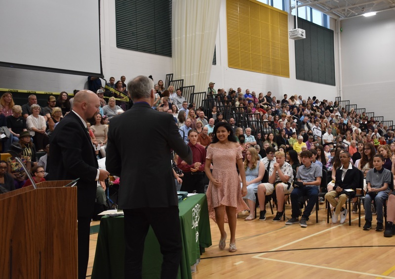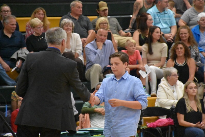 It was a wonderful evening, as the students were recognized for all of their hard work during their time at the Middle School. Students were presented with certificates of achievement, and the 7th and 8th-grade chorus performed to mark the special occasion. There were words of inspiration and encouragement from Middle School Principal Denise Capece, Middle School Assistant Principal Chris Adamek, High School Assistant Principal Herb Tedford, and fellow 8th-grade students Bradley Brenner, KauĂŞ Pereira, and Mackenzie Cross. Additionally, the Student Recognition Awards were also presented along with the 8th-grade slideshow that contained photos from over the years.