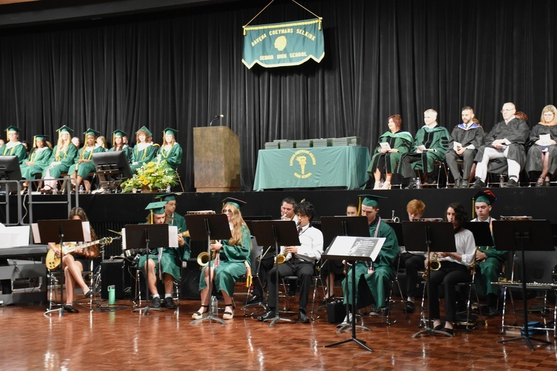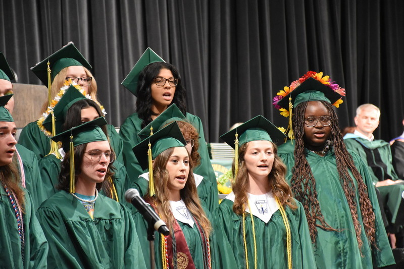 The commencement ceremony provided traditional highlights, including the processional of seniors into the ceremony, reciting of the Pledge of Allegiance, the singing of the Star-Spangled Banner, performances from the senior chorus members and graduation band, recognition of the Class of 2022 Top Ten, and the presentation of diplomas to this year’s graduates. The ceremony also included a speech from Superintendent Bailey and Principal Lisa Patierne, as well as speeches from Valedictorian Mollie McFerran and Salutatorian Madeline Dewsbury.