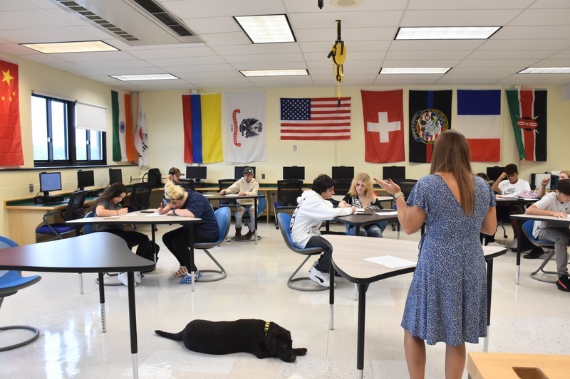He spent his first week at the High School getting acclimated to his new surroundings and working with his handling team. Archie will wear many hats while working with our community. Not only will he be present in classrooms throughout the building, but at different events throughout the year as he becomes more familiar with the building, students, and staff.