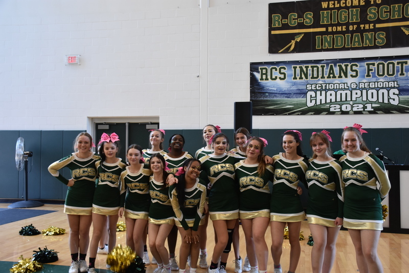 Cheerleading: The team really got involved with the crowd, fans, and the student section this year. They taught pop warner cheerleaders some cheers to perform at the Senior night game, participated in the pep rally, performed a halftime show for the homecoming football game, participated in creating banners for the players to run through, and also cheered on the fans for the home field advantage playoff game!!