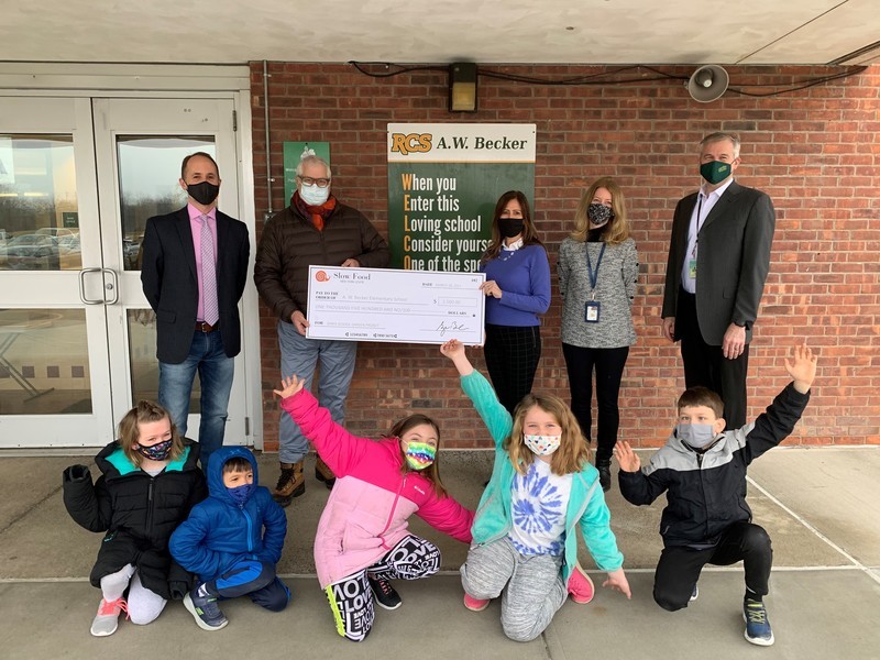 On Thursday, March 18, representatives from Slow Food New York State and Questar III joined district officials in presenting a check for $1,500 to support healthy food option programs at A.W. Becker Elementary. The donated funds will go directly towards assisting the district’s ongoing efforts to continue a school wide Project Based Learning curriculum and campus garden.