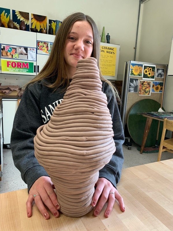 Paige is a prime example that demonstrates how hard work and effort can play into a student’s success. Since the beginning of the quarter, Paige has been excited about her art, and as you can see she loves creating and pushing the limits in her projects, especially clay! As a teacher, I appreciate that enthusiasm. I’m looking forward to seeing Paige grow and develop as an artist. While Paige was forming her coil vase, I began to notice and appreciate her patience and craftsmanship. Keep up the good work!