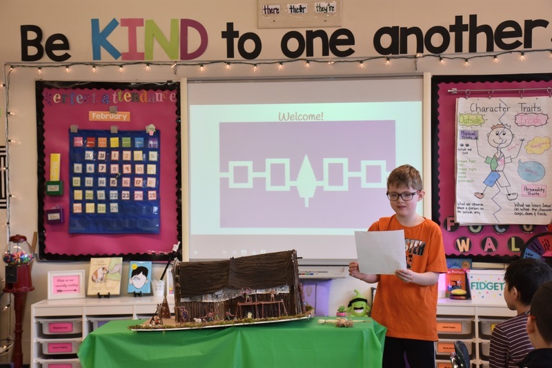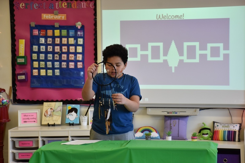 As they learned, students were also asked to research an aspect of Native American culture on their own. From there, students created displays to summarize what they learned through their research. Lastly, the students presented their projects to the class as well as family and friends who joined the class for the presentations.