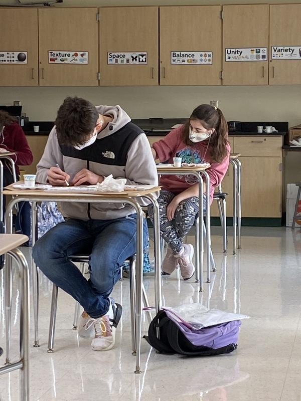 We would like to share some snapshots of our students while they work on their pieces. In celebration of the art making process, our National Art Honor Society and the RCS Community Library has created a coloring sheet for our community to enjoy the process of art making as well. We invite you to print, color, and enjoy! If you would like to share your finished coloring sheet, please email it to cwallace@rcscsd.org. You can find the coloring sheet here.