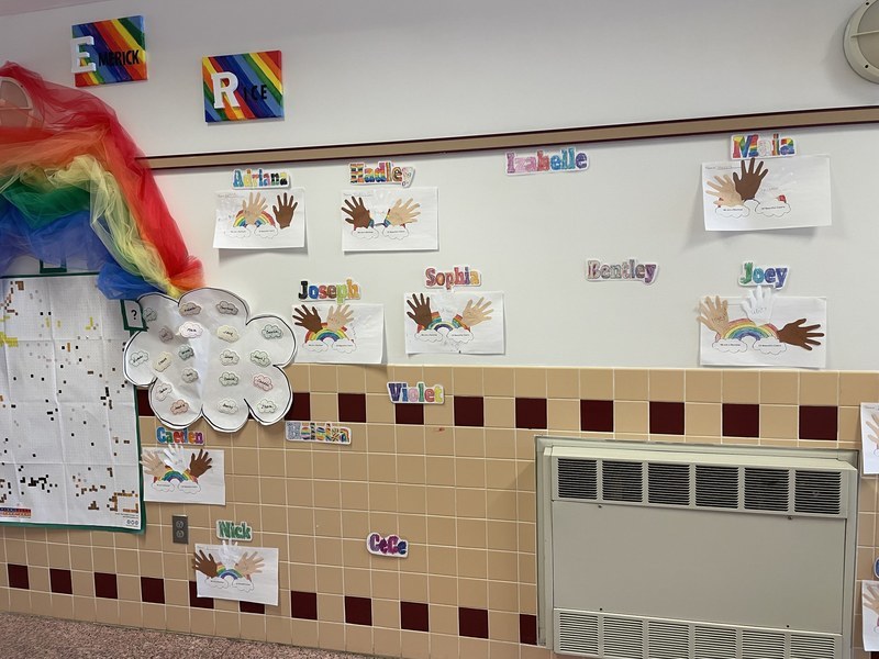 After reading and discussing the book, the students got creative and put together artwork that emphasized the core of the story and their classroom – we are a rainbow of beautiful colors. It stands as an engaging and powerful reminder for all that walk the Pieter B. halls.